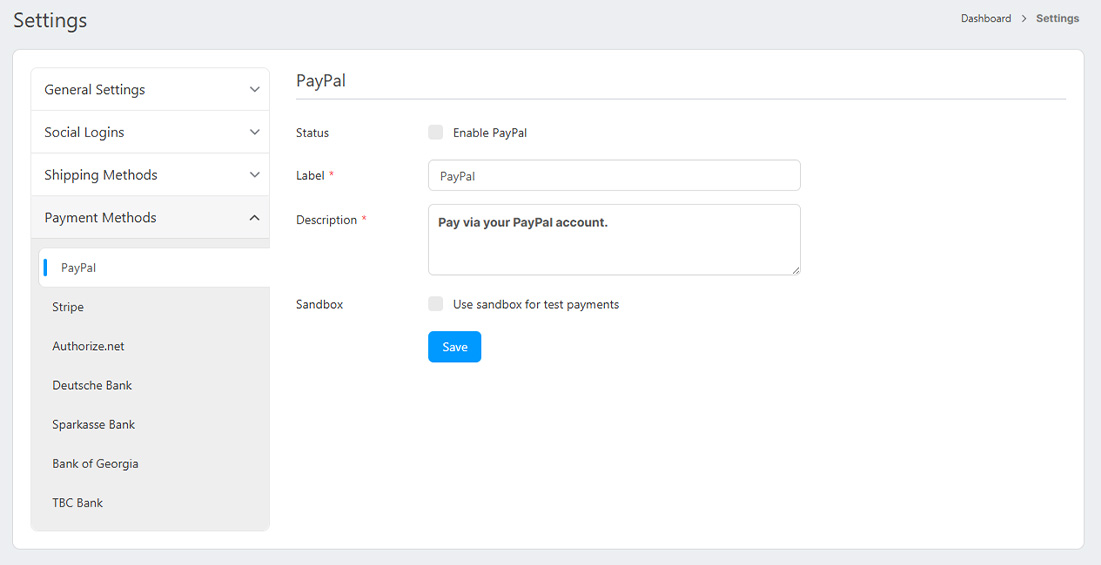 - Sandbox: Use PayPal sandbox for test payments.