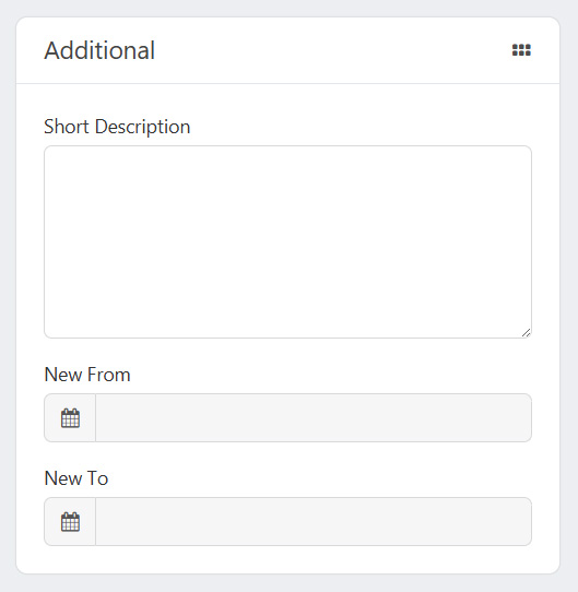 - Product New From: The start date for the New badge in the product card.