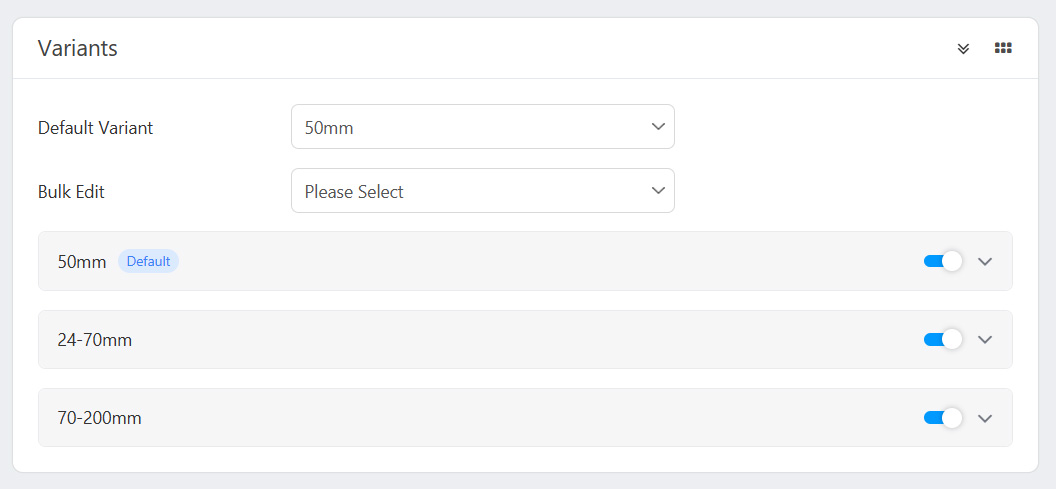 Bulk Edit: Select the field name from the Bulk Edit field to edit the field in all variants, and then press the "Apply" button to reflect the changes.