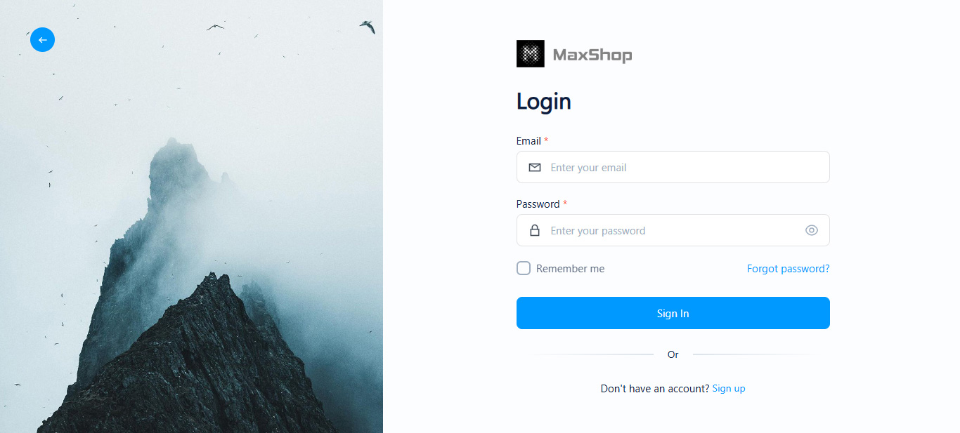 Now you have to enter your email and password that you've provided during the installation process. After pressing the Login button, then you'll redirect to the dashboard.