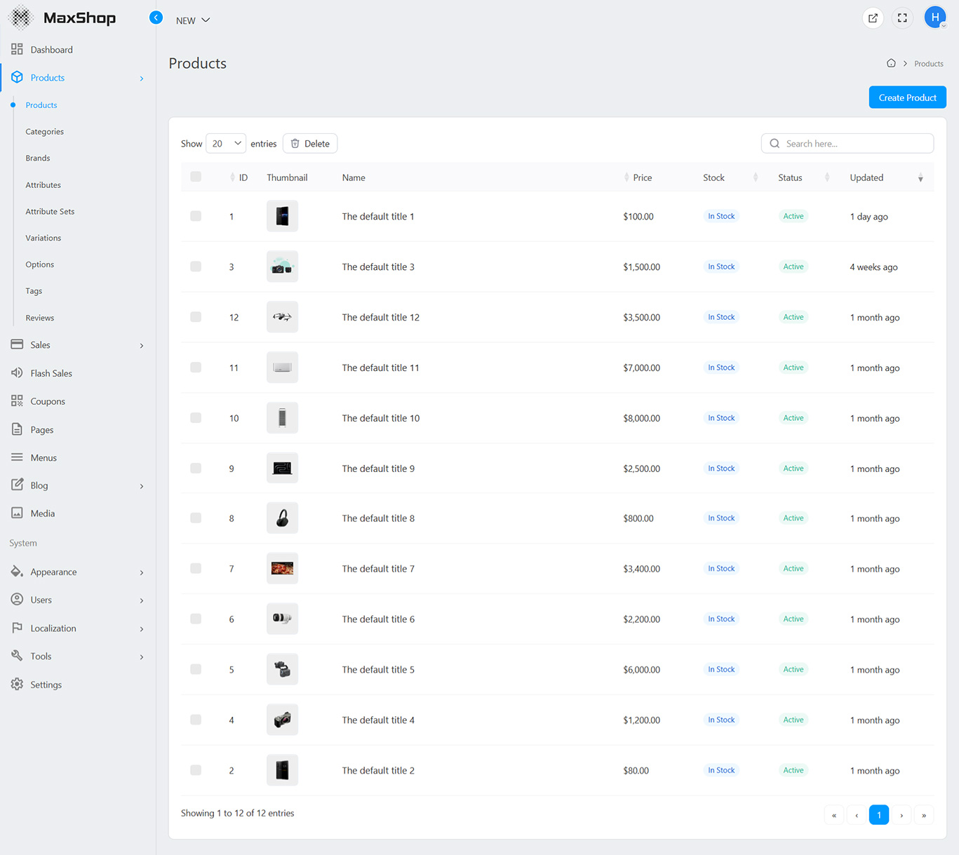 Navigate to Products > Create Product to create a new product.