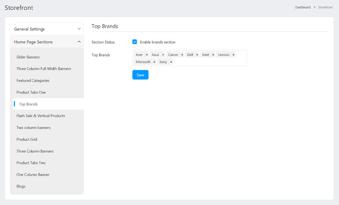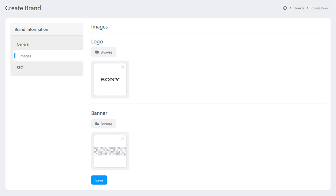 - Banner: Upload or select a banner image for the brand.