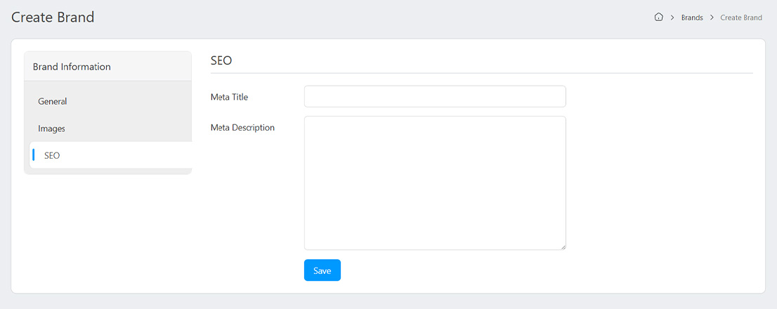 - Meta Title: Set the meta title for the brand.
