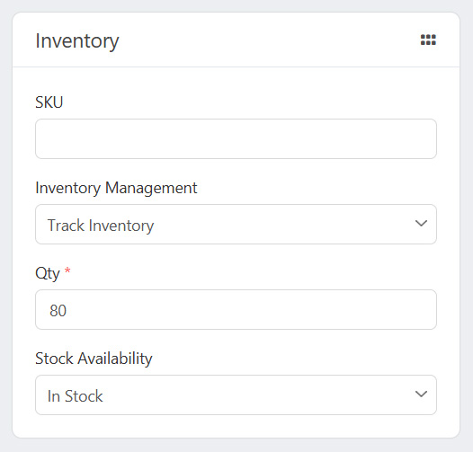 - Qty: If you've selected the Track Inventory option then you'll see a new Qty field under the Inventory Management field. You can add the total available amount of the product here.