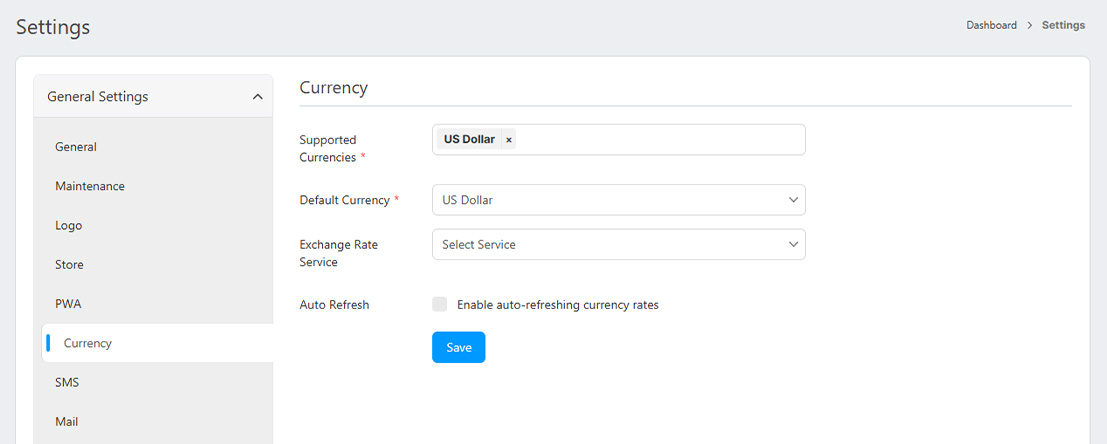 - Default Currency: Default currency of your store.