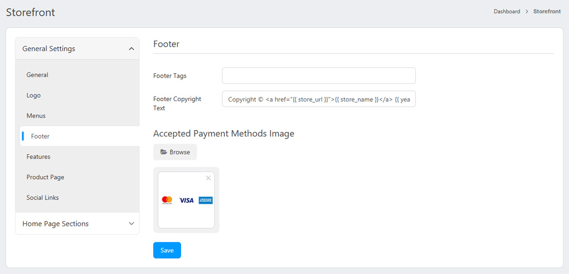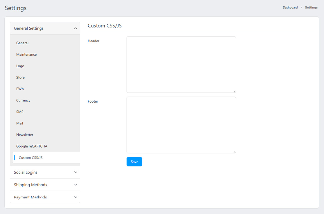 - Footer: Assets of this field will be printed at the bottom of the body tag.