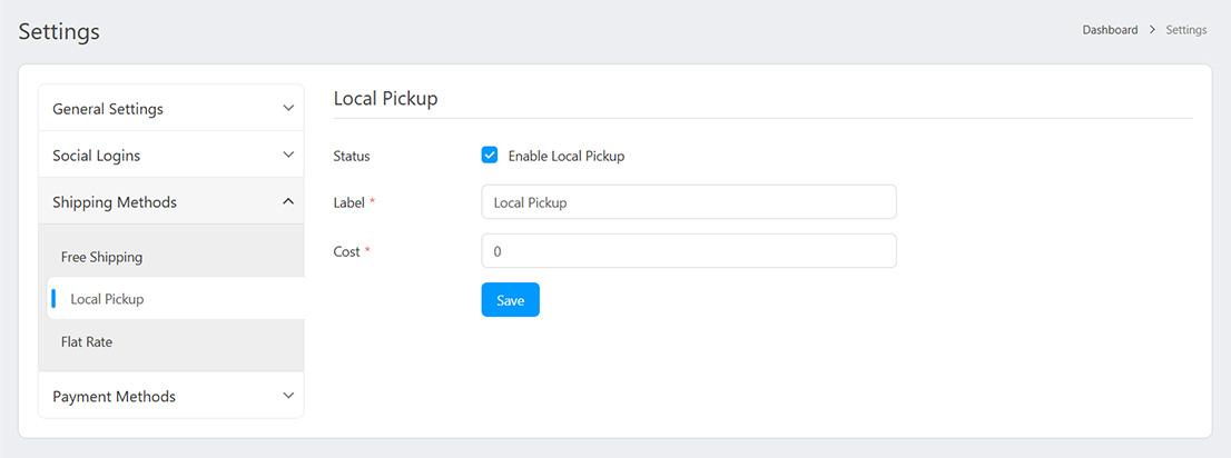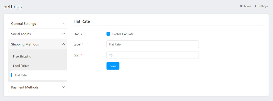 - Cost: The cost for this shipping method.