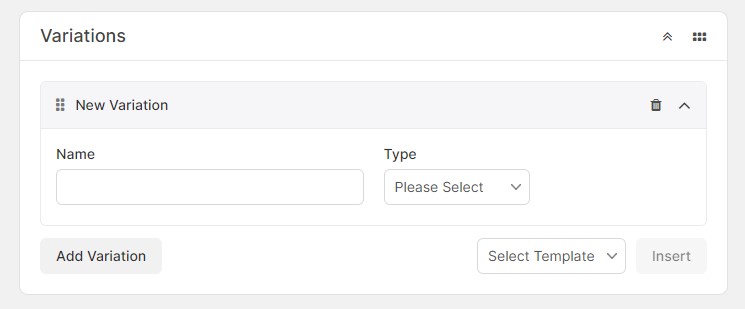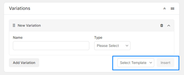 To add presets or global variations, select the variation template from the bottom right of the Variations section and press Insert.