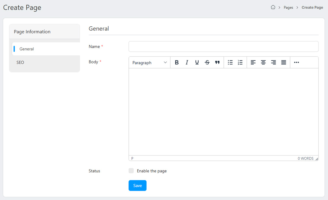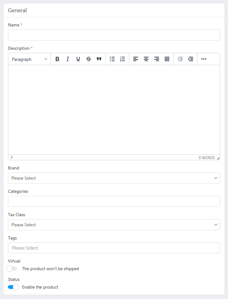 - Status: Enable the product by checking this checkbox. Customers will only see the enabled products.