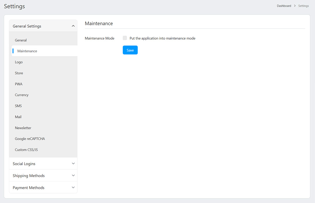 - Maintenance Mode: Put the application into maintenance mode.