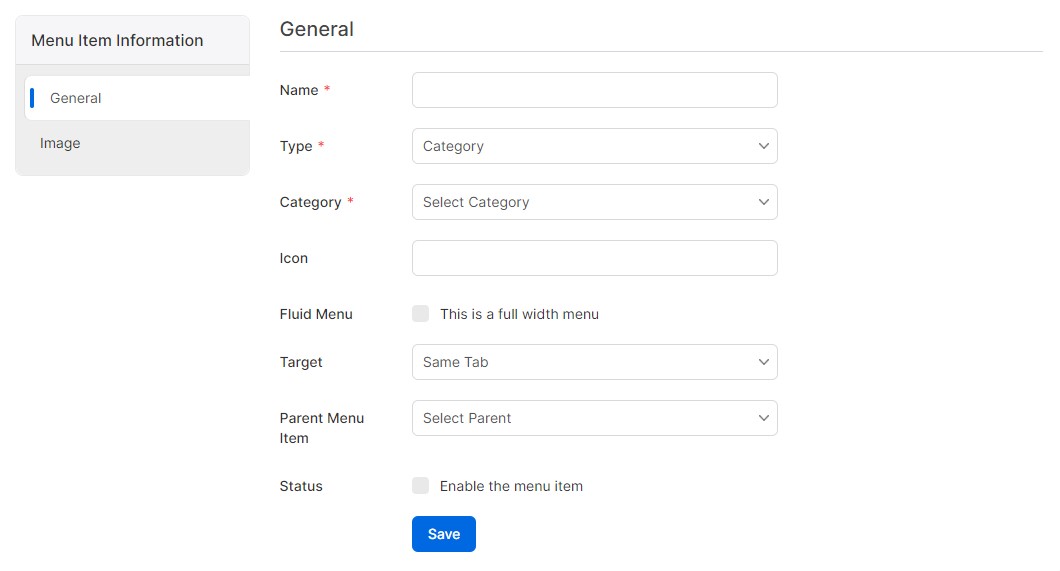 - Status: Enable the category by checking this checkbox. Only enabled categories can be used.
