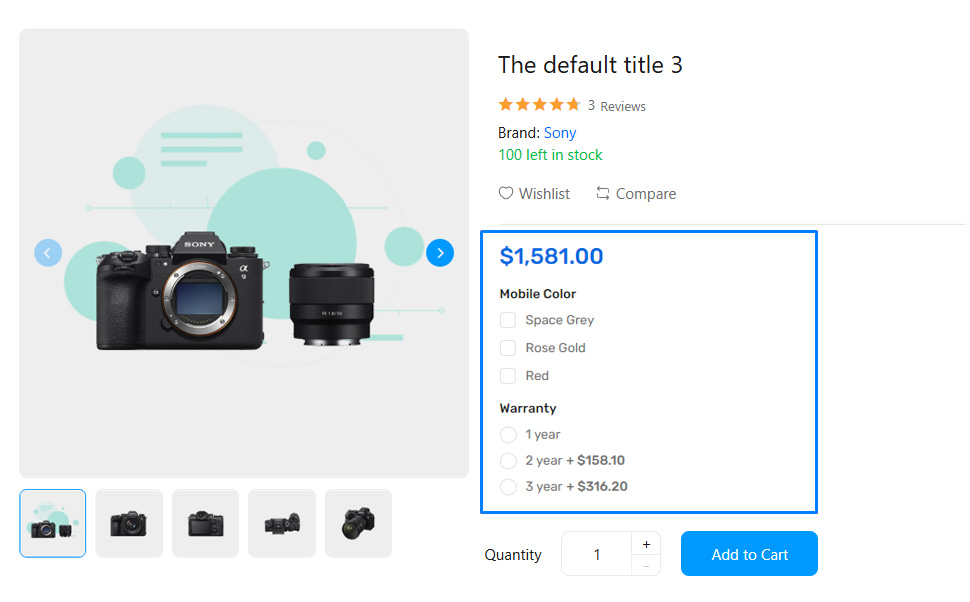 Customers will see a list of options while adding the product to their cart.