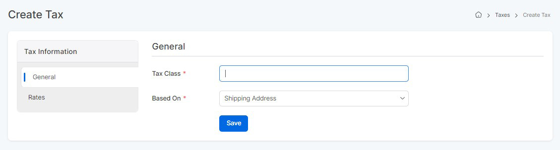 - Based On: Tax can be based on Shipping Address, Billing Address, or Store Address